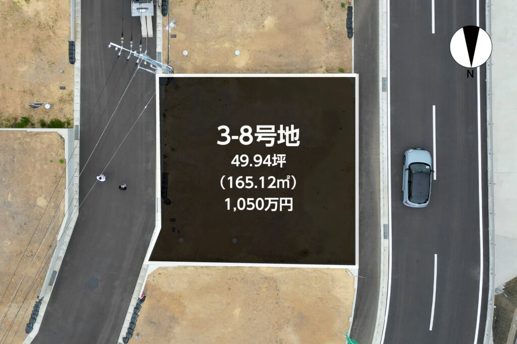 - 3-8号地:165.12㎡(49.94坪)1,050万円