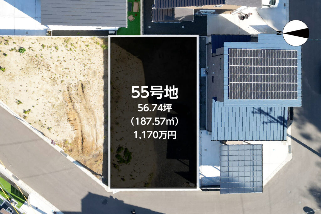 - 55号地:187.57㎡(56.74坪)1,170万円