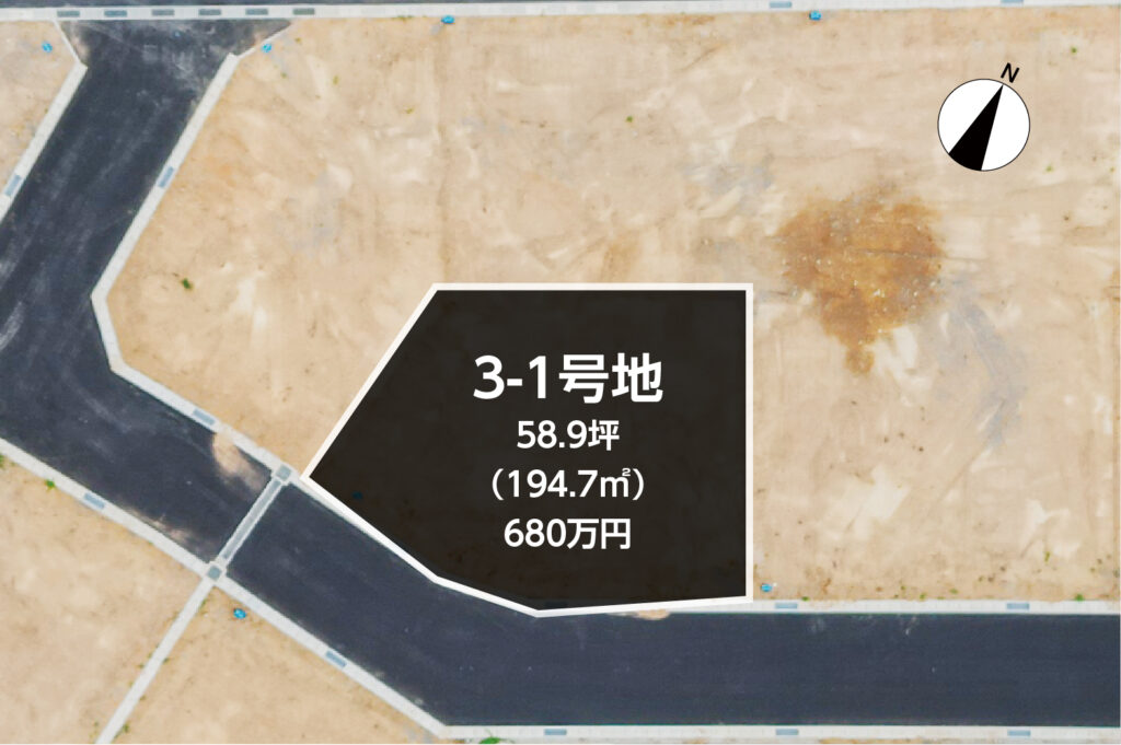 3-1号地:194.7㎡(58.9坪)680万円 - 【住所】